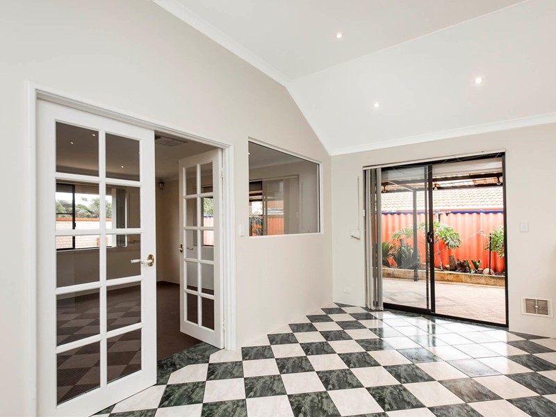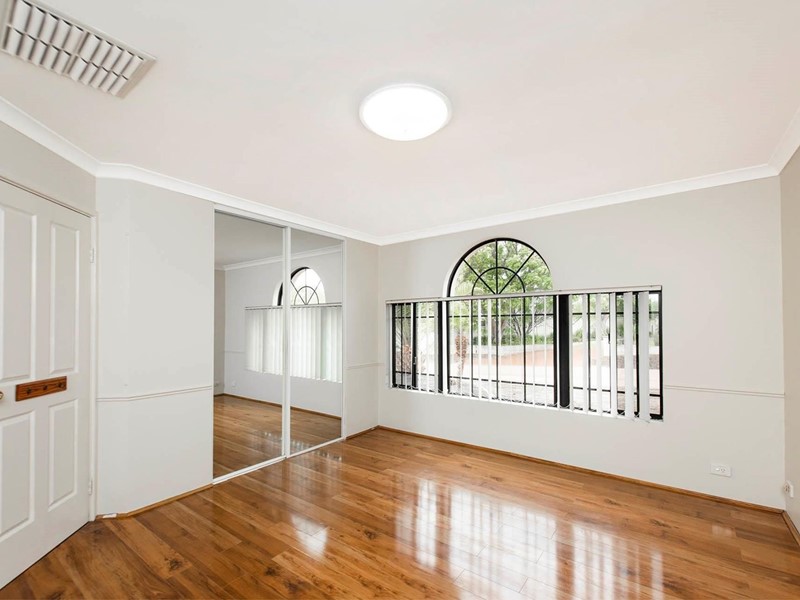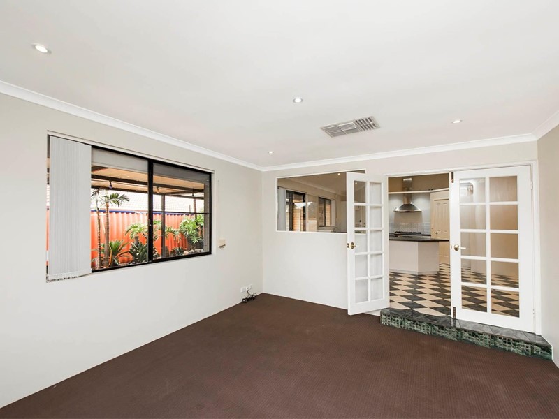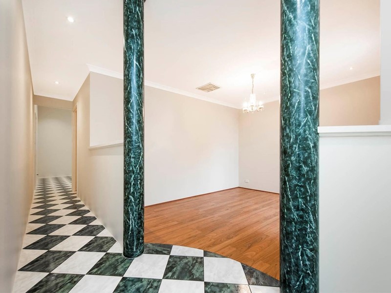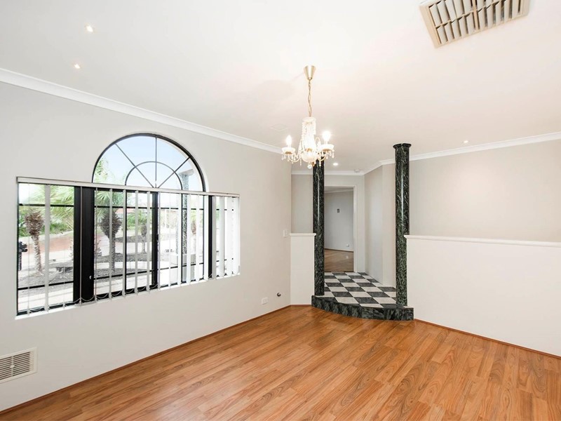 High ceilings grace the living areas, formal lounge room with feature window